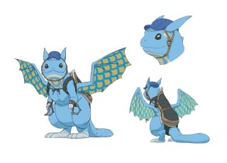 ジャイロは、タイムやアクタとは全く異なり、禍々しい鎧のようなものを身にまとい、後頭部からはタコの足のようなものが無数に生えているという異質な外見。ウーパナンタを脅かす強大な敵としての恐ろしさが存分に伝わるビジュアルだ。一方、ドラゴンのガフィンは全身が青く、大きな羽を広げ、どこか愛らしい表情をしており、ドラゴンライダーが乗るために鞍のようなものを背負っている。