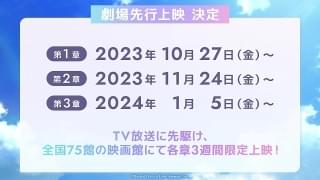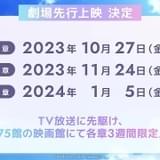 なおテレビ放送(全12話)に先駆けて、全国75館の劇場で全3章に構成されて先行上映される。第1章が10月27日、第2章が11月24日。第3章が24年1月5日から、各章3週間限定上映。