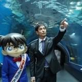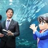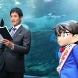 沢村はコナンとともに登場。サメやマンタなど数々の魚が泳ぎ、まるで海中にいるような感覚を味わえるドーム型の水槽を目前に「ヒョウ柄みたいな魚がいる!!」「顔みたいな模様してる!」と興奮ぎみ。コナンも水槽に張り付くように見学し、和気あいあいとした雰囲気の中でイベントがスタートした。
