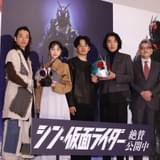 庵野秀明が監督・脚本を務める映画「シン・仮面ライダー」の大ヒット御礼舞台挨拶が4月9日、東京・丸の内TOEIで行われ、池松壮亮、浜辺美波、柄本佑、森山未來、そして“本イベントのMC”として庵野監督が出席した。