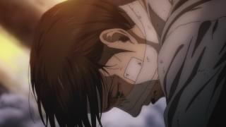 PV第1弾は、アルミンが幼い日の3人の思い出を振り返る声に乗せて、主要キャラクターの姿が映し出され、キービジュアルにもあったミカサの「いってらっしゃいエレン」というセリフにつながっていく。後編の新規映像も使用している。