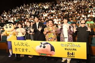 映画「しん次元!クレヨンしんちゃんTHE MOVIE 超能力大決戦 とべとべ手巻き寿司」の完成披露試写会が7月9日、都内で行われ、ゲスト声優の松坂桃李、空気階段の鈴木もぐら、水川かたまり、鬼頭明里、野原しんのすけ役の小林由美子、スペシャルゲストとしてMr.マリックが出席した。松坂はマリック直伝のスプーン曲げに挑戦し見事成功すると「ハンドパワーってあるんですね」と驚いた表情で語っていた。