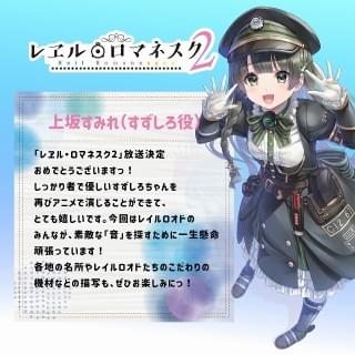 10月5日放送開始予定のテレビアニメ「レヱル・ロマネスク2」に、田中理恵、山根綺、島袋美由利、日高里菜、田所あずさ、本渡楓、楠木ともりの出演が決定した。また、第1期から上坂すみれが続投する。
