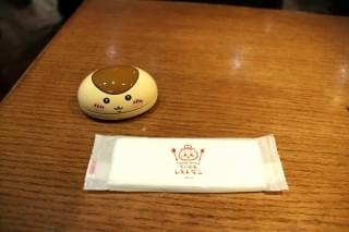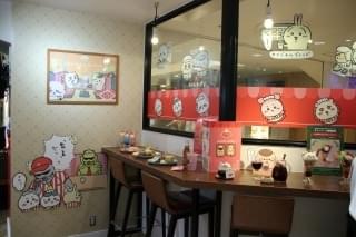 さらに、各テーブルには「くりまんじゅうの押しボタン」があったりと、細部まで見どころ盛りだくさん。店頭には二代目料理長のうさぎ、ホールスタッフのちいかわ、ハチワレと撮影できるフォトスポットも設置される。