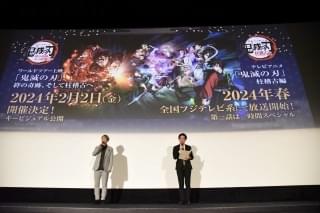 この日は、最新情報を詰め込んだ映像「プロモーションリール2024」が解禁され、「柱稽古編」の放送が24年春からスタートすることが明らかになった。小西は「『柱稽古編』ということで、若い隊士たちに稽古をつけるんですけど、ずっと受け継いできた魂を若い子に届けたいなというのと、引退したからこそ伝えたいものもあり、最初からトップギアで演じさせていただきました」と同編の収録の模様を明かした。また、映像内では宇髄の新たな姿も映し出されており、小西は「(宇髄は)フォルムを変えて映ってましたね、着流しなんですね、いいですねー!」と喜色満面だった。