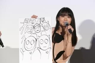 舞台挨拶では、登壇者によるアーニャのイラスト対決も行われ、江口と早見が安定の“画伯”ぶりを発揮し、客席からは悲鳴にも似た歓声が。「魔除けですか?」(中村)、「バケモンですよ!」(賀来)とゲスト声優も驚きを隠せない様子だった。