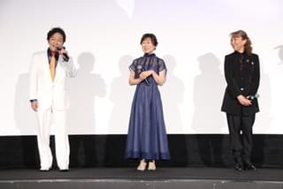 この日は、会場に多くの「名探偵コナン」ファンが駆け付けた。平次のうちわを掲げたファンもおり、宮村が「惚れたらあかんよ」と“和葉”としてセリフを披露する一幕も。大泉は「私のうちわを持っているチームもあそこにいますね。ひどいアウェイのなかで……」と苦笑。舞台挨拶中には、大泉へのサプライズとして、原作者・青山剛昌氏が川添善久を描き下ろしたイラスト色紙がプレゼントされた。