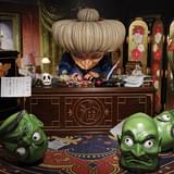 展覧会では、カオナシの横に座ることができる「千と千尋の神隠し」の名シーンを再現した展示や、「千と千尋の神隠し」の湯婆婆が仕事に没頭する様子が見られる「にせの館長室」特別バージョン、さらに「となりのトトロ」でおなじみのネコバスも登場する。