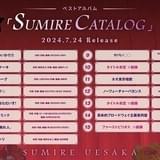 「SUMIRE CATALOG」は2枚組で、ディスク1は1stから15thまでのシングル表題曲を網羅。ディスク2には、1stアルバムのリード曲「革命的ブロードウェイ主義者同盟」や、ライブの定番曲「ウエサカダイナミック」「よっぱらっぴ☆」など上坂自らがセレクトした12曲に加えて、新録3曲が収録される。