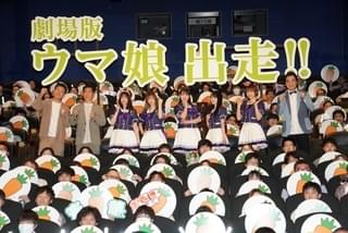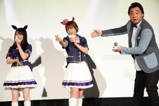 サイゲームスが展開するクロスメディアコンテンツ「ウマ娘 プリティーダービー」を映画化した「劇場版 ウマ娘 プリティーダービー 新時代の扉」の初日舞台挨拶が5月24日にTOHOシネマズ日比谷で行われ、声優の藤本侑里、上坂すみれ、小倉唯、福嶋晴菜、徳井青空、応援隊長に就任したお笑いトリオ「ジャングルポケット」(太田博久、おたけ、斉藤慎二)が出席した。