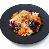 同作の舞台である大奥をイメージした大奥うどん、女中のあさげセット、和傘パフェなどのフード・デザートのほか、作中に登場するキャラクターの薬売り、アサ、カメをイメージしたドリンクなどがラインナップ。店内には等身大の描き下ろしキャラクターパネルやミニキャラ装飾が展示され、「モノノ怪」の世界感を楽しむことができる。
