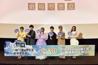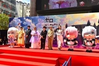 東京・新宿歌舞伎町タワーシネシティ広場で行われたジャパンプレミアカーペットイベントには、キャストの小林裕介(ナツキ・スバル役)、高橋李依(エミリア役)、岡本信彦(ガーフィール・ティンゼル役)、天﨑滉平(オットー・スーウェン役)、山根綺(リリアナ・マスカレード役)、安済知佳(シリウス・ロマネコンティ役)がキャラクターをイメージした衣装で登壇。猛暑のなか集まったファンの声援に応え、小林は「暑いけど、気持ちいいです!」と喜びを述べた。