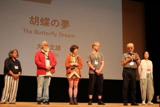 「胡蝶の夢」の大井文雄監督は、昭和時代からNHK「みんなのうた」を数多く手がけた大ベテラン。中国の荘子の説話をベースにした本作上映を「虚実の間と、人が死ぬ瞬間に、一瞬過去のことを思い返すこと、懺悔や無常感を表現した。ネット時代にこういう大きなスクリーンで、多くの方に同時に見ていただけ、とても嬉しく思います」と感想を述べた。炎の動きを人間の精神の象徴として水墨画風に表現した「炎」のリュウ・イ監督は、「この作品を見てくださった方の、ご自身の思い、好奇心、感情、 思考に火がつくようなきっかけになったら」と述懐。