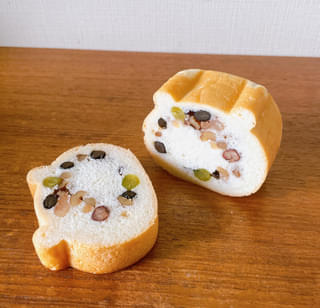 クリームの濃厚な甘さが続くなか、「ちいかわ豆食パン」はやさしい甘さがうれしいポイントでした。かのこ豆とクルミが入ったミニサイズの食パンで、素朴なパンが好きな方にはおすすめです。小さいですが、包丁でカットもしやすかったです。