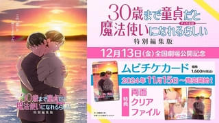 「30歳まで童貞だと魔法使いになれるらしい 特別編集版」は12月13日から東京・新宿バルト9ほかで公開。11月15日から両面クリアファイル付きムビチケカードが全国の上映劇場(一部劇場を除く)と通販で販売中。また全国のアニメイト店舗・通販ではアニメイト限定 A3クリアポスター付きのムビチケカードも販売される。