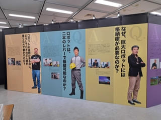 巨大ロボットの展示らしくロボットイメージは大きく展示され、あたかも「飛び出す絵本」の中を歩くような体感型の展示となっている。