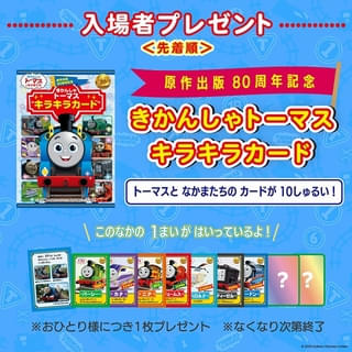入場特典は「原作出版80周年記念 きかんしゃトーマスキラキラカード」に決定。全10種類から1枚がランダムで配布される。