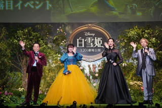 また、この日のイベントでは、月城かなと、お笑いコンビ「ダイアン」の津田篤宏、諏訪部順一が吹替え声優を務めることが発表され、イベントにも出席。それぞれ、本作には欠かせない邪悪な女王、7人のこびと(おこりんぼ)、魔法の鏡を演じる。