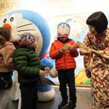 この日のために装飾されたドラえもん仕様の豪華なグリーティングエリアで、水田とあいみょん、そしてドラえもんが来場した親子151人を出迎えた。映画ポスターがプリントされた大きな看板の前で、水田はドラえもんがあしらわれたオリジナルステッカーを、あいみょんはドラえもんのサンバイザーを来場者に手渡しでプレゼント。早速、ステッカーは胸元に、サンバイザーは頭にかぶり、うきうきな子どもたち――そんな姿を目の当たりにした2人は、「子どもたちがとてもかわいい! 『ドラえもん』をずっと観てきた世代の方が自身の子どもを連れて来ている姿は、感慨深いです」(水田)、「サンバイザーを渡したらすぐにつけてくれて、一緒に写真を撮って、ほっこり…。子どもたちのいい表情がたくさん見られてよかったです」(あいみょん)とコメントした。