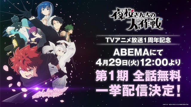 特番は、YouTubeの「NBCUniversal Anime/Musicチャンネル」とABEMAで、4月29日午後12時から配信。川島、本渡、小西に加え、夜桜二刃役の鬼頭明里、夜桜辛三役の興津和幸、夜桜四怨役の悠木碧、夜桜嫌五/ゴリアテ役の松岡禎丞、夜桜七悪役の内山夕実の8人が集合し、放送1周年を祝う。5月6日までの期間限定公開。