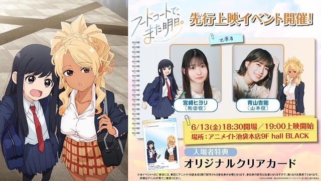 6月13日にアニメイト池袋本店で、第1話の先行上映イベントが開催されることも決まった。主演の宮崎と青山が登壇し、入場特典としてオリジナルクリアカードが配布される。観覧には、5月17日開店時から店頭で配布される参加券が必要となる。