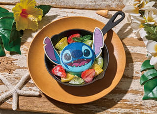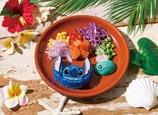 スペシャルカフェのコンセプトは、“夏を楽しむスティッチ”。カフェメニューは、スティッチとリロが大切にしている人形・スクランプをイメージした具だくさんの「ハワイアンポキプレート」(税込1990円)や、スティッチをイメージしたフルーツたっぷりの「ハワイアンパンケーキ」(税込1890円)、波をイメージした「波乗りシェイブアイス」(税込1590円)。さらに、人気キャラクター達をイメージしたドリンクなどが揃う。メニューは全て、ディズニーの栄養成分に関するガイドラインに適合したヘルシーなメニューとなっている。