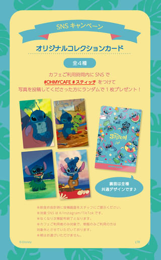 「『スティッチ』OH MY CAFE」は、東京・新宿の「BOX cafe&space ルミネエスト新宿店」で6月20日~7月27日、愛知・名古屋の「BOX cafe&spaceグローバルゲート2号店」で7月10日~8月3日に期間限定オープン。カフェ公式サイトで予約受付中。予約金は税込770円。1申込につき、4席まで予約可能。事前予約者限定でカフェ利用特典として「オリジナルうちわ(全3種)」をランダムで1枚プレゼントするほか、SNSキャンペーンも実施される。