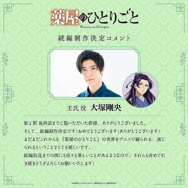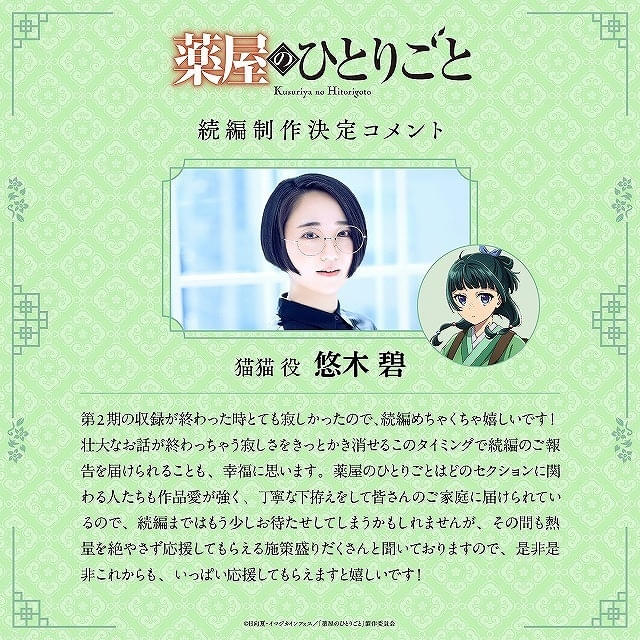 まだまだこれからも『薬屋のひとりごと』の世界をアニメで観られる、演じられるということでとても嬉しいです。