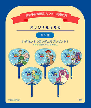 カフェ公式サイト(https://toy2025.ohmycafe.jp/)で予約受付中。予約金は税込770円。1申込につき、4席まで予約可能。事前予約者限定でカフェ利用特典として「オリジナルうちわ(全5種)」をランダムで1枚プレゼントする。カフェグッズ購入特典として物販コーナーで3850円(税込)以上購入すると、「オリジナルショッパー」が1会計につき1枚もらえる(※無くなり次第終了)。