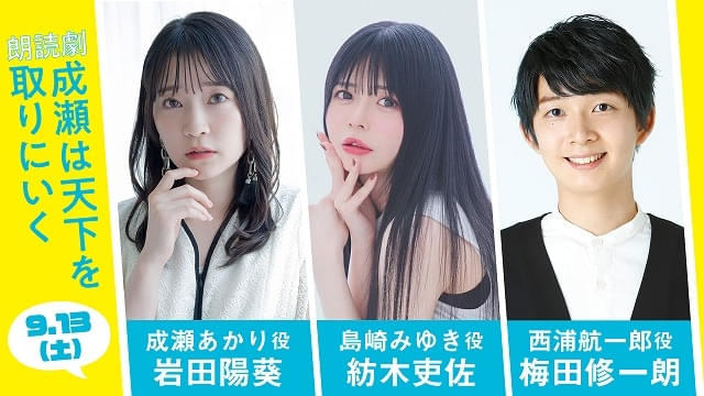小説「成瀬は天下を取りにいく」朗読劇化 岩田陽葵、安済知佳、若山詩音ら出演で9月上演