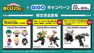 GiGO限定クレーンゲーム景品として、9月12日から「僕のヒーローアカデミア チビちびぐるみ~GiGO限定~(全6種)」、9月22日から「僕のヒーローアカデミア フィギュア 緑谷出久・爆豪勝己~GiGO限定~ver.3(全2種)」「僕のヒーローアカデミア フィギュア アーマード・オールマイト オール・フォー・ワン ~GiGO限定~(全2種)」が順次登場する。マストバイキャンペーンとして、対象台に500円投入ごとにオリジナルシールが1枚プレゼントされる(絵柄はランダム。なくなり次第、終了)。