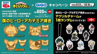 「ヒロアカ」と「GiGO」のコラボが9月12日から開始 アクリルチャーム付き「僕のヒーローアカデミア焼き」販売など