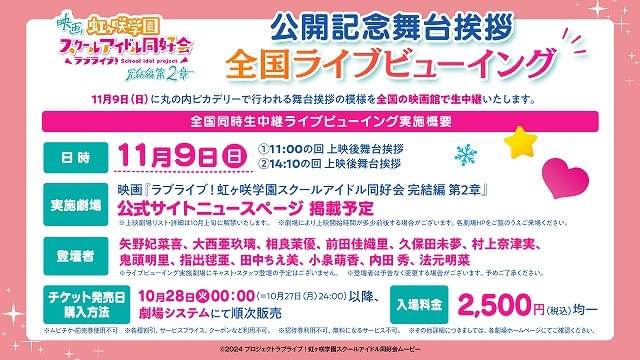 劇場アニメ「ラブライブ!虹ヶ咲学園スクールアイドル同好会 完結編 第2章」の本予告や入場特典が発表された。このほか、「完結編 第2章」の公開を記念し、特番配信やOVA「NEXT SKY」&「完結編 第1章」のノーカットおよび地上波初放送なども決定している。