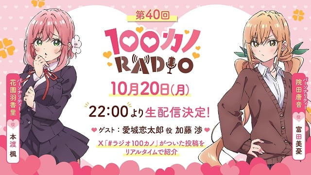 また、本渡と富田がパーソナリティを務める「100カノRADIO」の第40回が、10月20日午後10時から生配信されることも決まった。ゲストとして主演の加藤が登場する。