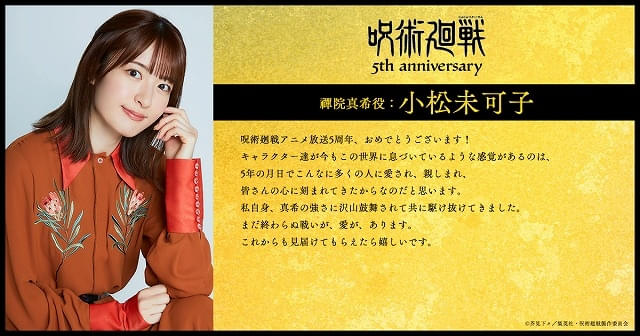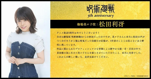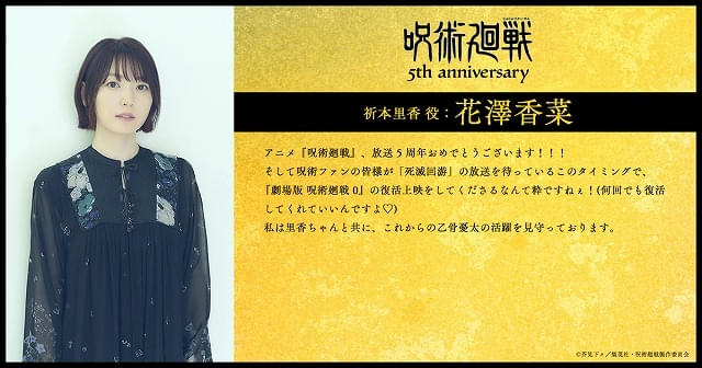 さらに、10月3日に「呪術廻戦」第1期の放送から5周年を迎えたことをうけて、「劇場版 呪術廻戦 0」キャストの緒方恵美、花澤香菜らがコメントを寄せている。