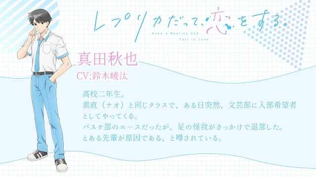 鈴木が演じる真田秋也は、素直(ナオ)のクラスメイト。バスケ部のエースだったが、足の怪我がきっかけで退部し、文芸部に入部を希望する。退部の原因は、ある先輩が原因だと噂されている。