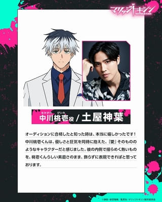 オーディションに合格したと知った時は、本当に嬉しかったです!中川桃壱くんは、優しさと狂気を同時に抱えた、『愛』そのもののようなキャラクターだと感じました。彼の内側で揺らめく熱いものを、桃壱くんらしい素直さのまま、飾らずに表現できればと思っております。