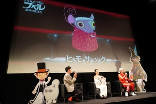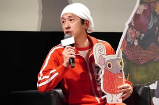 この日は、カジサックが劇中キャラクター、ヒモサック役で声優出演することが発表され、ビジュアルも公開。前作「映画 えんとつ町のプペル」で演じた“町人A”から、今回は名前がある役どころに昇格したが、「思ってたんと違う。セリフは裏声で、鬼のように加工されている」とこちらも苦笑いを見せた。