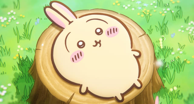 あわせて、3枚の場面写真が公開。ワクワクが止まらない様子のちいかわとハチワレ、切り株の上で寝っ転がっているうさぎや、愛用のさすまたを背負って並び立つ、ちいかわとハチワレの凛々しい後ろ姿を収めている。