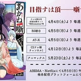 「あかね噺」は、テレビ朝日系「IMAnimation」枠で4月4日から毎週土曜午後11時30分、BS朝日で4月5日から毎週日曜深夜1時、AT-Xで4月5日から毎週日曜午後10時、CSテレ朝チャンネル1で4月12日から毎週日曜午後9時、アニマックスで5月23日から毎週土曜午後8時30分放送。ABEMAとNetflixでは4月5日午前0時から先行配信され、他の各配信プラットフォームは順次配信開始される。