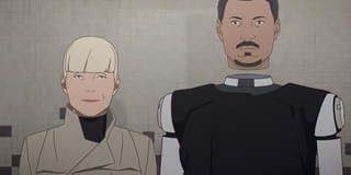 このほど公開されたのは、SFネタ満載の潜入調査シーンだ。失踪した女子大生ジュンの行方を追う私立探偵アリーヌ・ルビーとアンドロイドの相棒カルロス・リヴェラ。ジュンが自らの脳を貸し出す闇バイトに関与していた疑いが浮上し、“ブレインファーマー”と呼ばれる元締めへの接触を試みる。闇バイト希望のふりをして、表向きは一見普通のインテリアショップにやってきたアリーヌ。バックヤードから現れた強面の怪しい男の顔を瞬時にスマート機能搭載コンタクトレンズで撮影し、店の裏へと案内される間にデータを転送。受信した画像をもとに精巧なマスクを3Dプリンターで成形したカルロスが、それを被って別ルートで侵入する。カメラ機能を備えたコンタクトレンズや、自動マスク成形装置、そして未来の闇バイトの実態が映し出される。