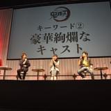 また「『鬼滅の刃』を紐解くキーワード」コーナーの「個性的すぎるキャラクター」では、下野が「アニメだから原作よりもいろいろと抑えている部分があると思っていたけれど、ほぼ同じ。そのため、必然と叫ぶことが多くなり、最初はどこまで行けるか不安もありながら、最近は逆にどこまで自分が声を出せるのか楽しくなっています」と限界に挑戦していることを明かした。大塚芳忠、梶裕貴、子安武人、緑川光ら“豪華絢爛なキャスト”との共演について、鬼頭は「大先輩しかいない現場で、(禰豆子は)セリフが少ないぶん、みなさんの演技を見て勉強しています」、櫻井は「どこを向いても豪華キャスト」と収録を振り返る。