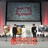 このほかステージでは、配信を間近に控える「極主夫道」から主人公・龍役の津田健次郎、「エデン」からサラ役の高野、「バイオハザード:インフィニット ダークネス」から主人公レオン・S・ケネディ役の森川智之が登壇し、トークが繰り広げられた。津田は「主夫あるあるや、学べることも多くハチャメチャ感が楽しい」と作品の魅力に触れ、サラを赤ん坊から少女に成長するまで一貫して演じた高野は「まだまだ言えない大きな秘密があるがサラと一緒に旅をしてほしい」と作品への思いをコメント。森川は、「バイオハザード:インフィニット ダークネス」がシリーズ初の連続CGドラマということで、「サバイバルホラーのジャンルだが結構重厚な展開もあって興奮すると思う」と、視聴者としても楽しみだと明かしている。