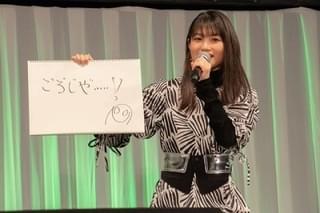 1問目は「江口が思う本作の注目シーン」を種崎と早見が当てることになったが、2人の答えはそろわない。不正解となるかと思いきや、3人の必死の言い訳&フォローによって、クイズはまさかの正解に。その後も同様に、強引に正解へともっていく手法を繰り返した結果、クイズは全問正解。“家族3人”の息のあったトーク、連携プレーを見せつけて、場内を盛り上げた。