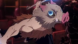 炭治郎、善逸と同じく鬼殺隊の剣士。「獣(けだもの)の呼吸」の使い手。ふだんは頭にイノシシの被り物をしていて、直情的な言動が目立つ。