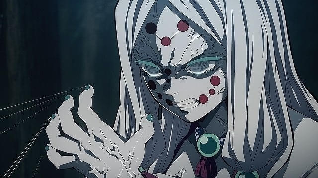 「刀鍛冶の里編」の第1話「誰かの夢」から登場し、同編のメインの敵となった鬼。上弦の鬼でありながら、弱々しい見た目で、常に何かにおびえているが、追い込まれるほどに強くなっていく。