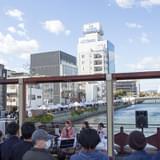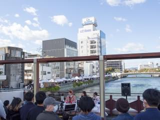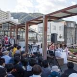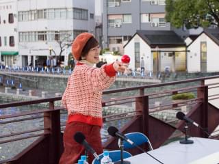開催場所は、徳島を流れる新町川にかかる「ふれあい橋」に設けた特設会場。当日は見事な快晴で、やや風は強かったものの川を背にした屋外ならではのロケーションで、2部にわけて生配信が行われました。いつもの番組と違った雰囲気をアーカイブ動画で追体験してみてください。