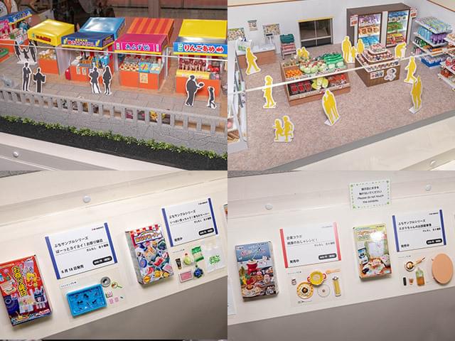 6月に開催された「東京おもちゃショー」から、リーメントブースの様子。リーメントはもともと「ぷちサンプル」という食べ物や家具等のミニチュアを多数出しています。1/12ぐらいで使えそうなものもいろいろ。