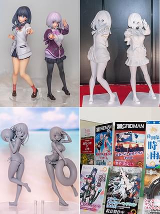 「WONDERFUL HOBBY LIFE FOR YOU!!」以外のメーカーでも「SSSS.GRIDMAN」を発表。プルクラも六花とアカネを展示していましたが、1/6スケールのもの(写真左上)に加えて等身大(写真右上)のものも! アクアマリンは水着の2人の原型を展示(写真左下)。キューズQはパネルでチアガールバージョンを発表(写真右下)しています。