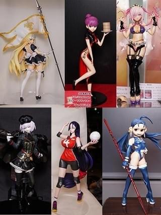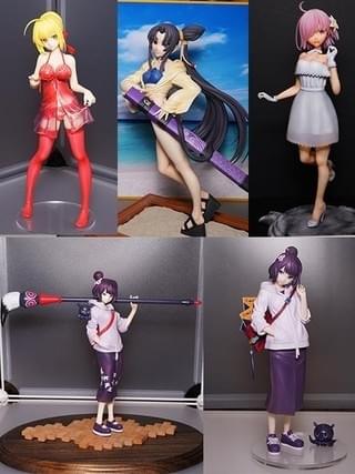 左上から右に、ネロ ランジェリーver.(スノー☆キャット)、牛若丸 水着Ver.(林檎連盟)、マシュ・キリエライト 英霊正装ver.(CBO)。左下は葛飾北斎 英霊旅装(凸+凹の店)、右下は葛飾北斎 英霊旅装(CtrlZ)。